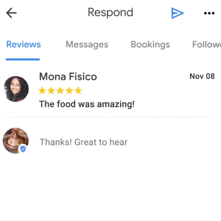 当评论蜂拥而至时,你要确保自己积极回应。谷歌发现那些对评论做出回应的企业被认为比那些没有回应的企业更值得信赖1.7倍。花几分钟时间,对积极的评价说“谢谢”,并提出通过私人信息解决问题来解决潜在的批评。