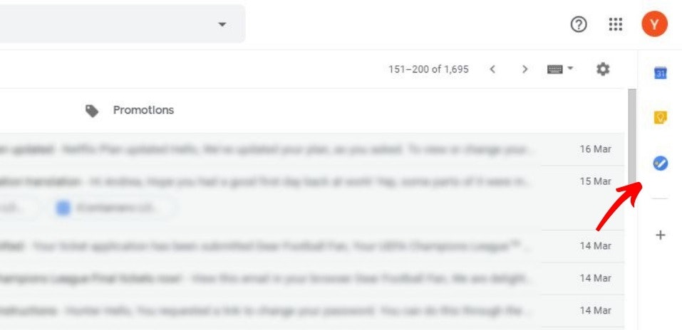 在你的桌面上,任务已经集成到你的谷歌界面。你可以在右边的侧边面板上找到它:Gmail,谷歌日历,驱动器,文档,表格和幻灯片。