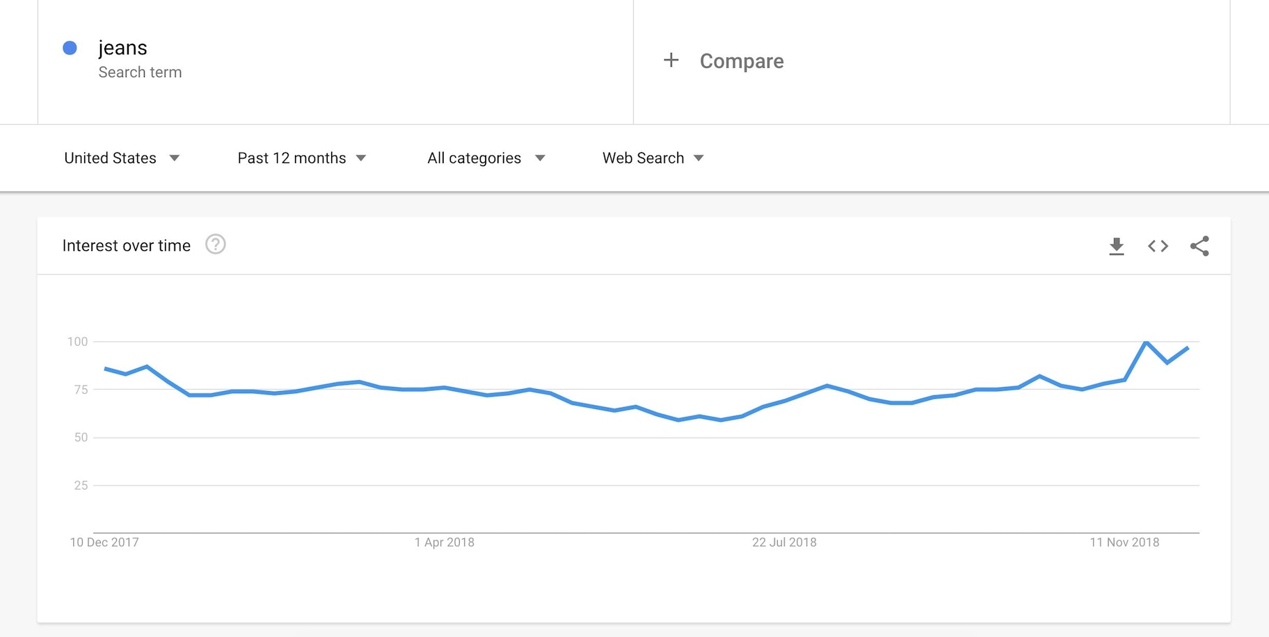 举个例子,我在谷歌趋势上搜索“牛仔裤”。