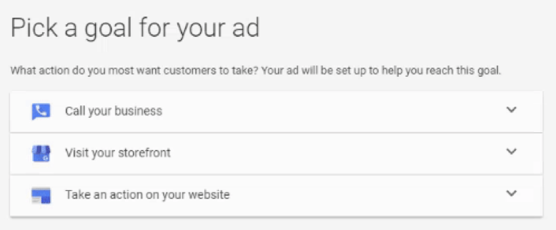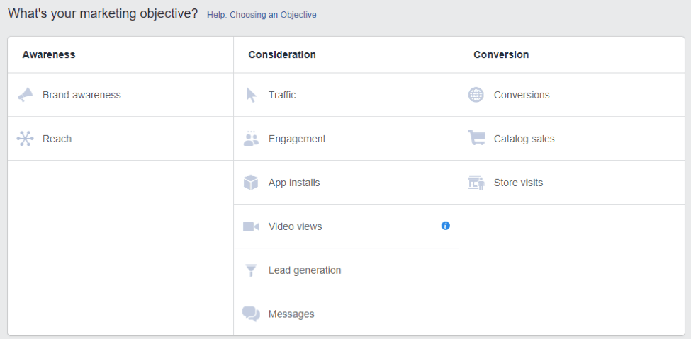 从那里,你会走过的过程,以目标和完成你的广告,包括图像和副本。首先,你需要为你的广告选择一个目标。