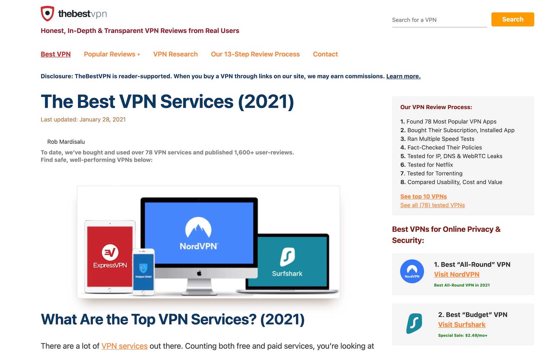 例如,TheBestVPN是一个评论市场上最流行的虚拟专用网(vpn)的网站。对于关注网络安全并确保其信息安全的受众来说,这类网站是信息的金矿。