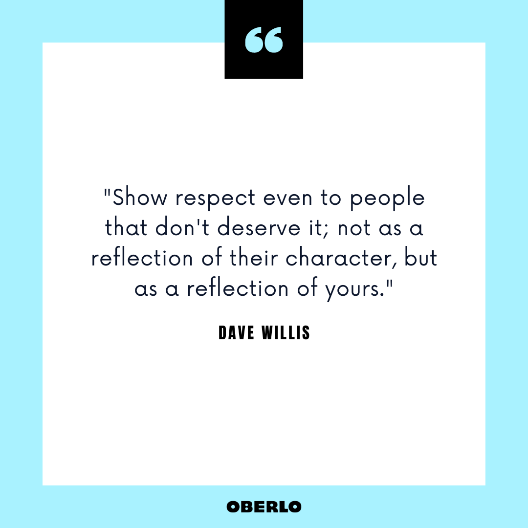 作家戴夫·威利斯说过:“即使对不值得尊重的人也要尊重;不是作为他们性格的反映,而是作为你性格的反映。”