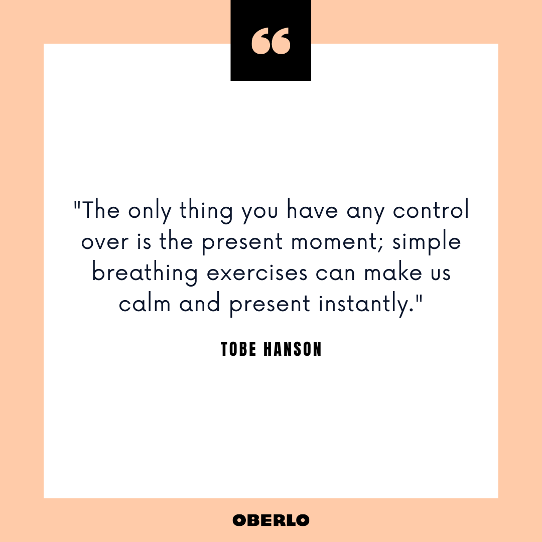 “如果你感到焦虑或抑郁,你不是活在当下。你要么焦虑地预测未来,要么沮丧地停留在过去,”个人成长作者托比·汉森写道。“你唯一能控制的就是现在;简单的呼吸练习可以让我们立即平静下来。”