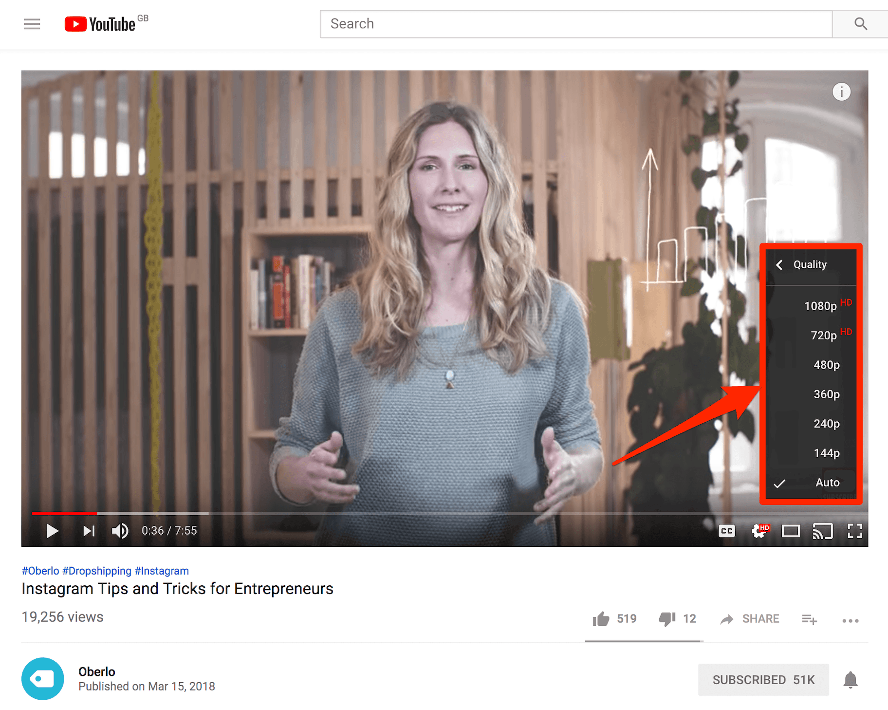 切换到1080p将提供最高的质量,但如果视频需要很长时间来缓冲,通常更容易降至720p。这仍然被认为是高清的,但由于需要担心的像素更少,视频加载速度会更快。