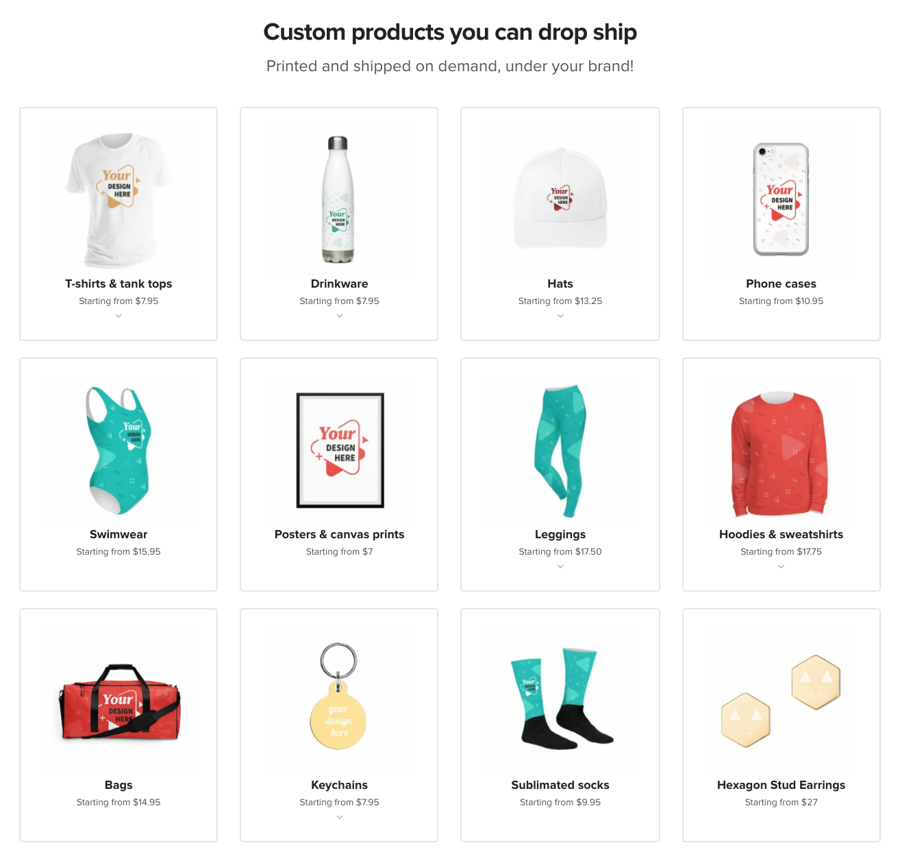 按需打印是一种dropshipping这使得卖家(像你一样)可以在一系列产品上添加独特的设计和品牌,并在网上销售。