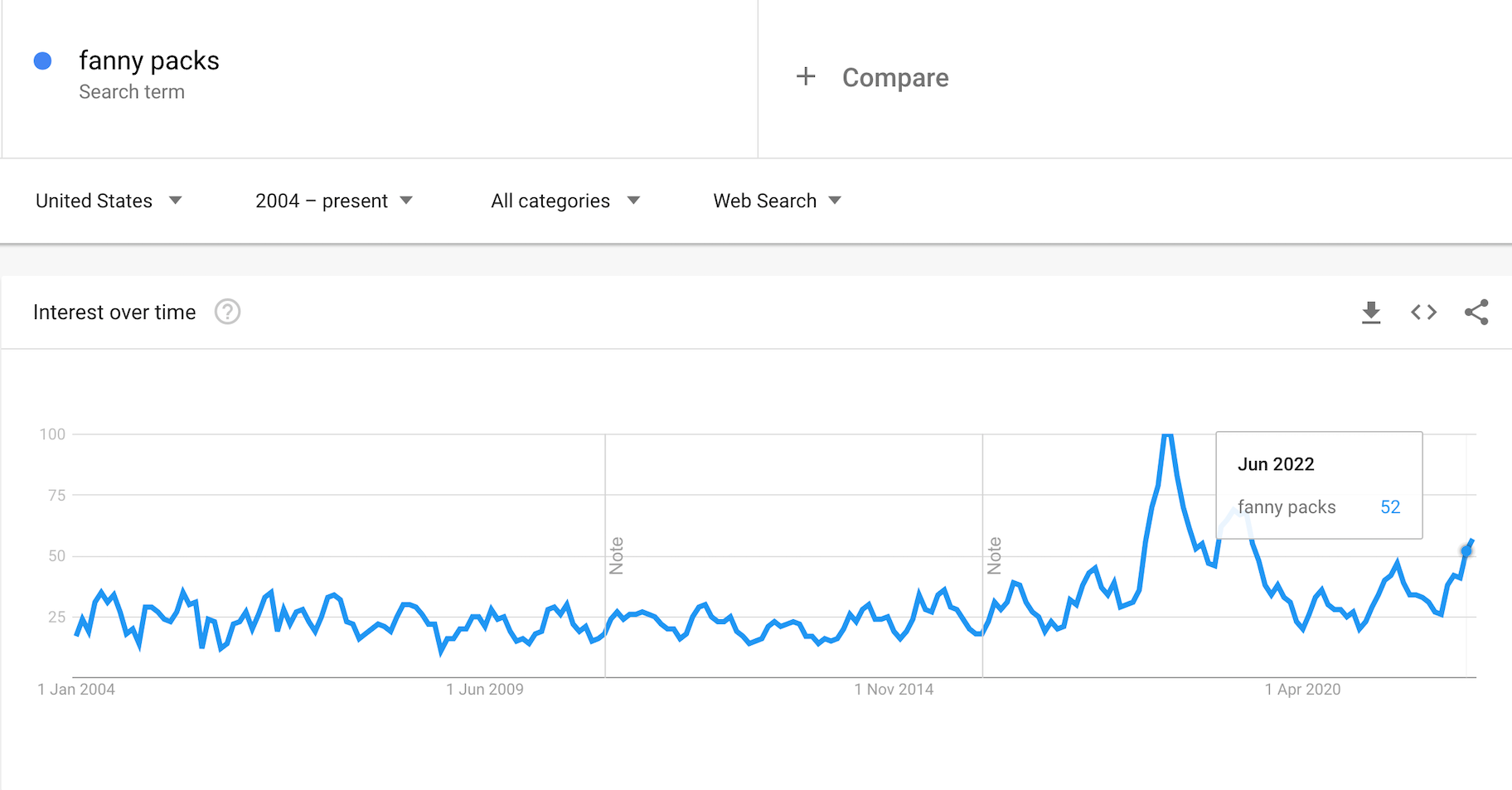 谷歌Trends显示了人们对夏季腰包的兴趣: