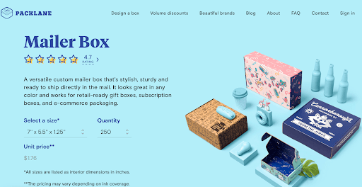 - UPrinting和Packlane用于自定义设计,包括产品箱、邮筒和运输箱