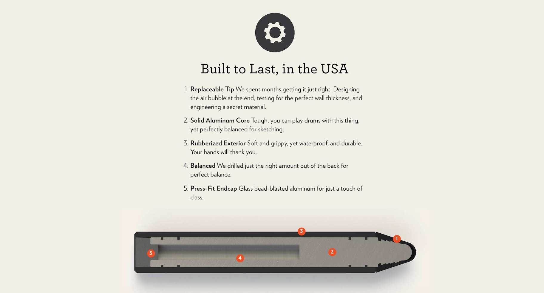页面的基础结构是标准的,但执行异常。描述文字的两句话让你想象物品在你的地方会是什么样子——“在你的床头柜上或在你的桌子上……”——像圆形图像一样的触摸给它一些流行感。