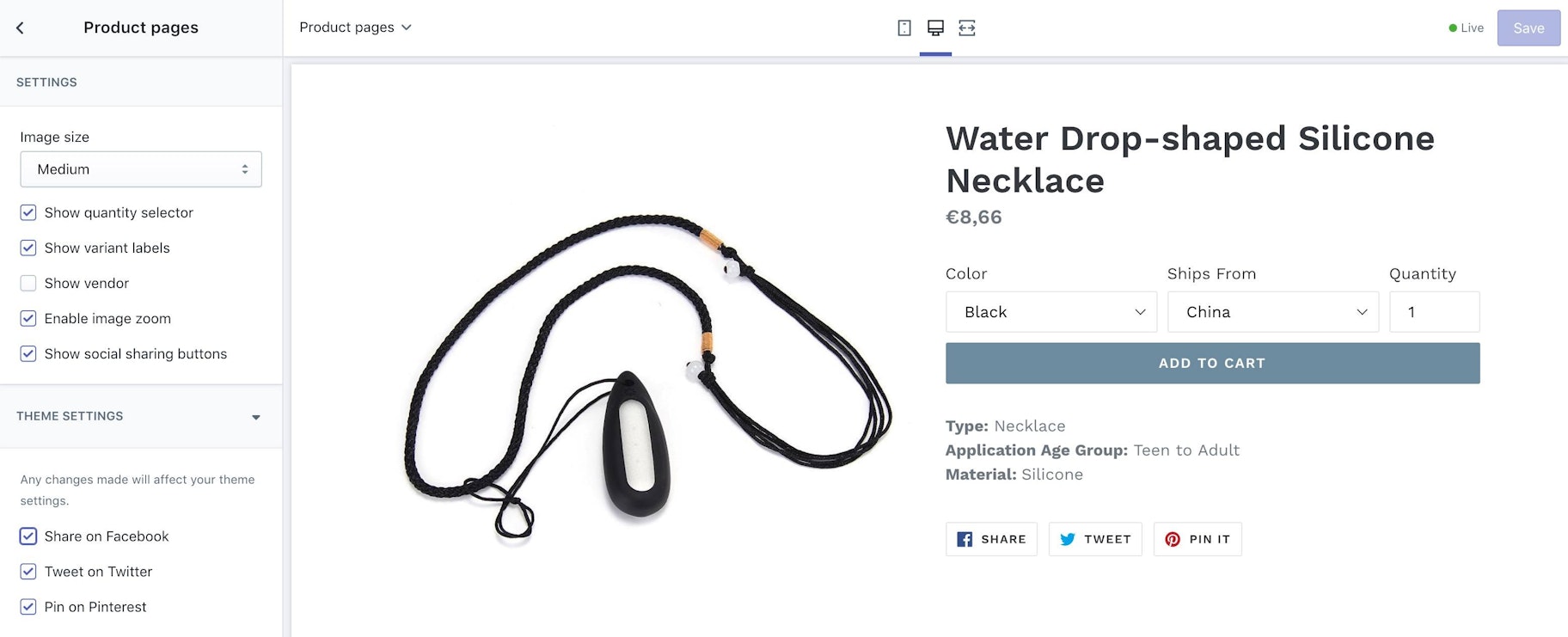 无论你为Shopify商店使用什么设计模板,产品页面后端看起来都是这样的: