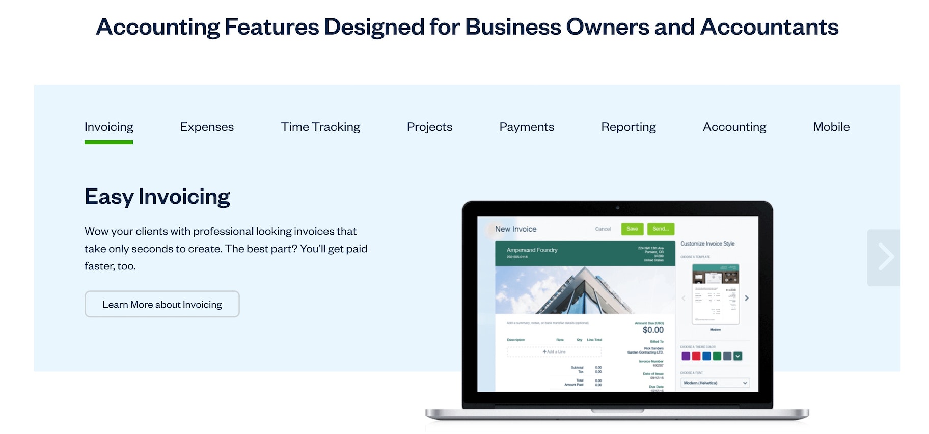 FreshBooks是另一个基于云的发票管理和小型企业会计软件。它配备了核心会计、费用管理和其他所有你需要做基本簿记的东西。