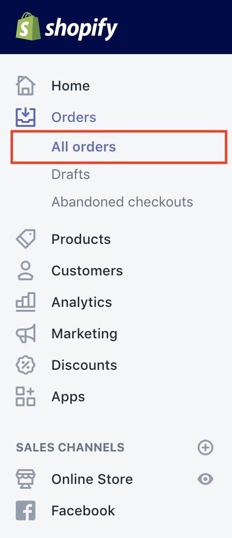 转到Shopify管理页面,选择“订单”选项卡,你会在页面的左侧找到