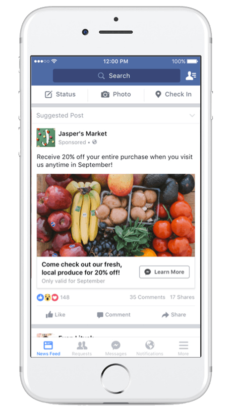 在这个来自Jasper 's Market的Facebook Messenger广告示例中,赞助消息被发送给之前已经在Messenger上与该品牌进行过互动的用户。