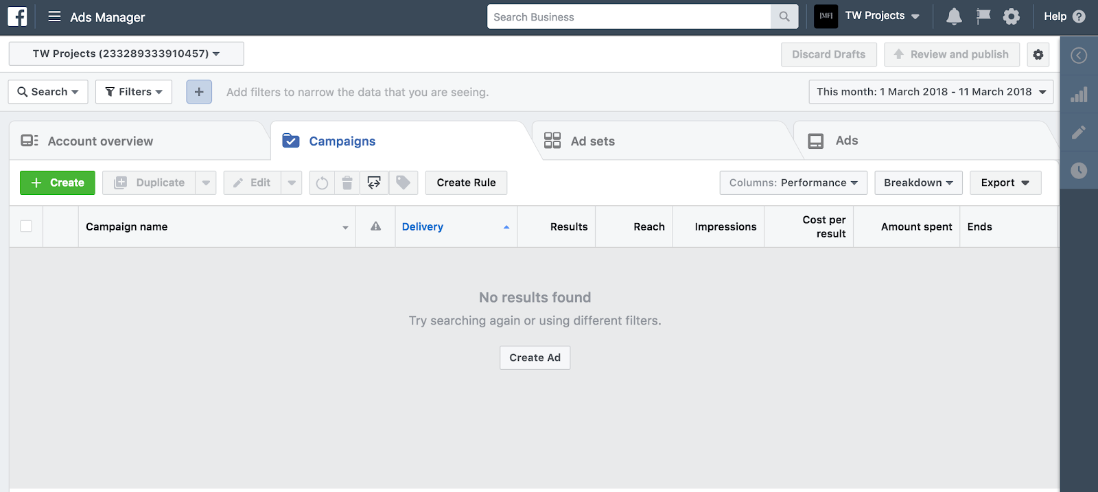 在我们开始之前,让我们快速浏览一下新的Facebook广告界面。