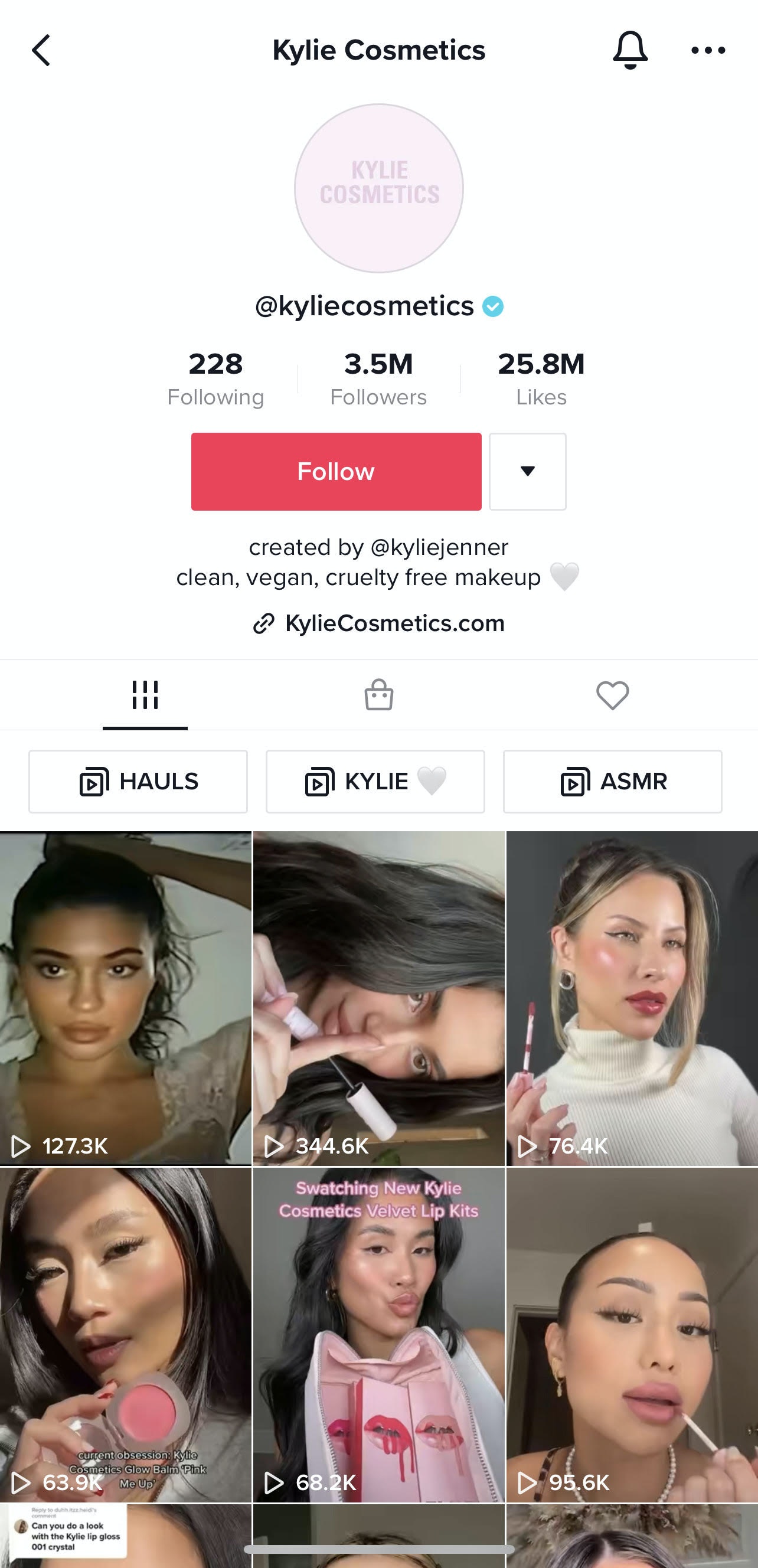 TikTok允许你在个人资料中添加一个购物标签,让浏览者只需滑动一下就能访问你所有的产品。Shopify商店Kylie Cosmetics使用购物标签直接在TikTok上进行销售。