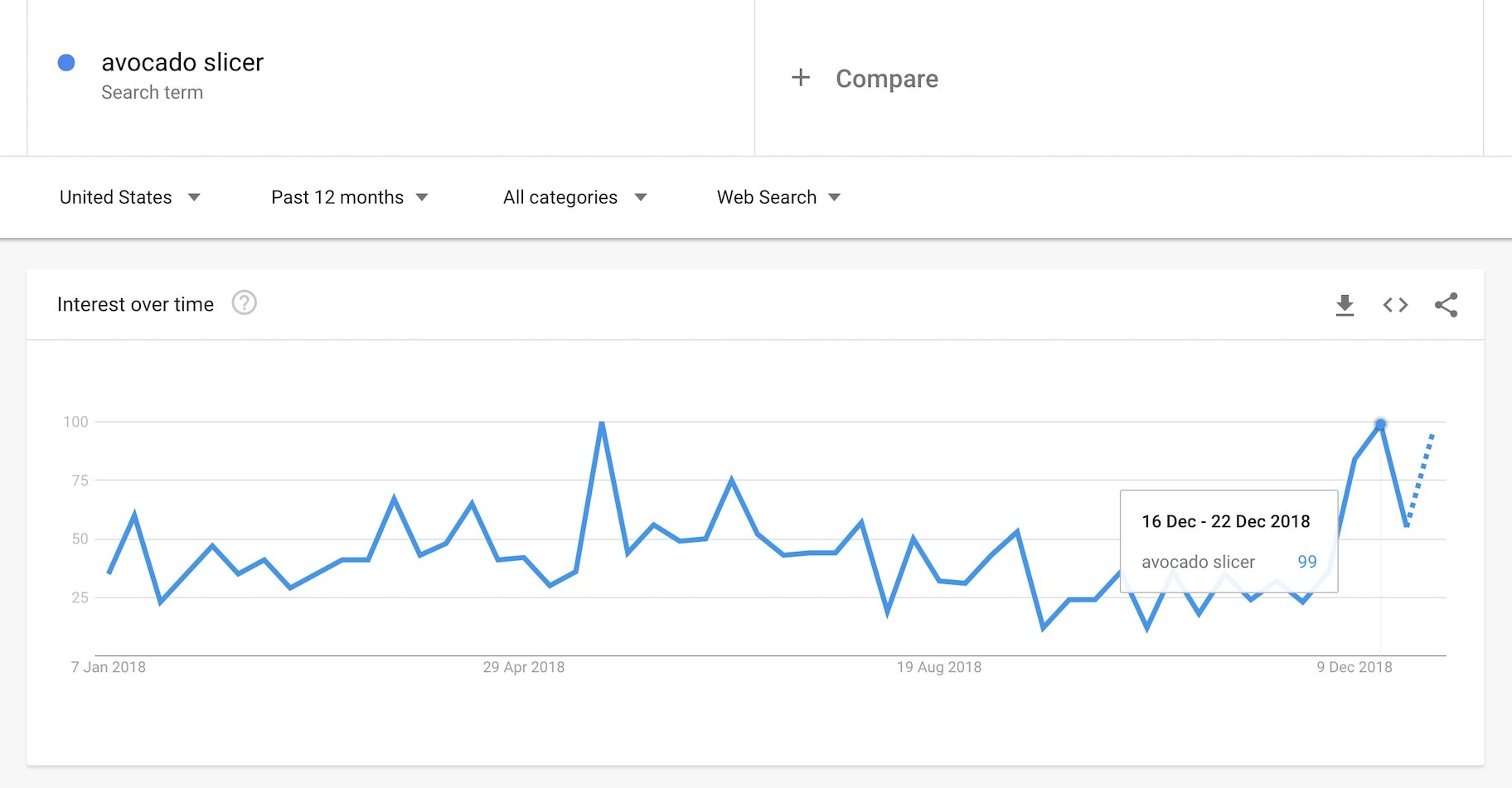 Google Trends是验证dropshipping产品创意的绝佳工具,因为它提供了关于搜索特定术语的人数的见解。从本质上讲,它让你了解一个产品在中国的受欢迎程度dropshipping市场.