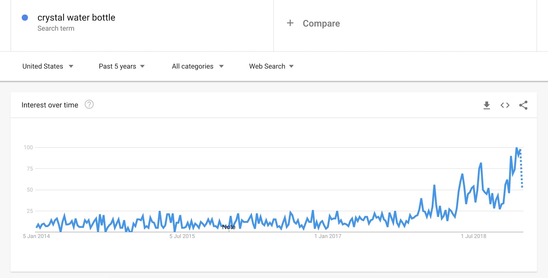 而且,正如你从上面的谷歌趋势图中看到的那样,水晶水瓶的受欢迎程度正在飙升。