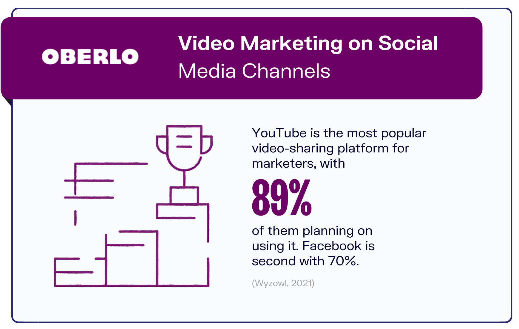 根据最新的视频营销统计,YouTube是最受营销人员欢迎的发布视频的社交媒体平台。近十有八九(89%)营销人员表示,他们计划在YouTube上进行视频营销(Wyzowl, 2021)。