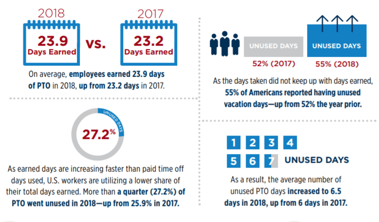 你知道2018年美国人离开了吗7.68亿天的带薪休假(PTO)在谈判桌上?55%的美国人表示,他们没有用完所有的假期。