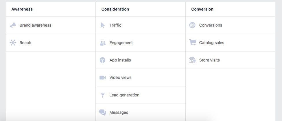 每当你开始一项新活动时,你都必须从广告目标列表中进行选择。