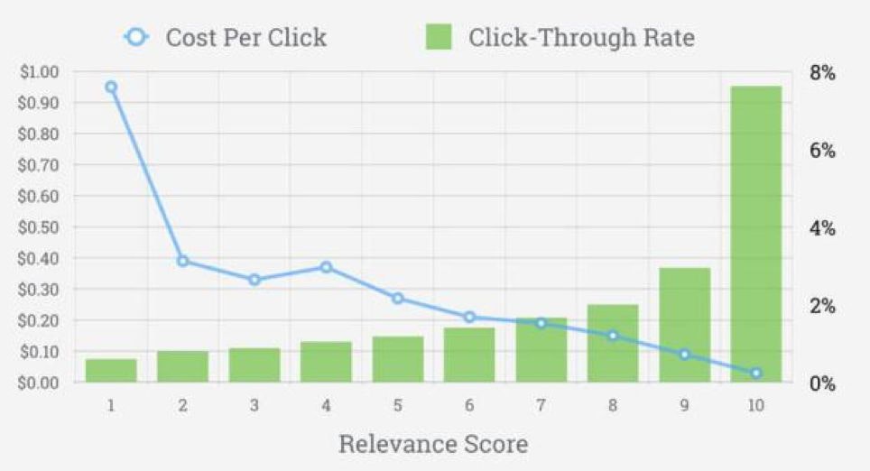 你的相关性得分越高,你的CPC就越低,点击率就越高。换句话说,用更少的钱卖出更多的产品。