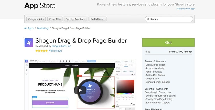 Shogun: This Shopify app allows you to drag and drop different elements for various pages on your online store. You can use this tool to reimagine your About Us page rather than having a plain white page.