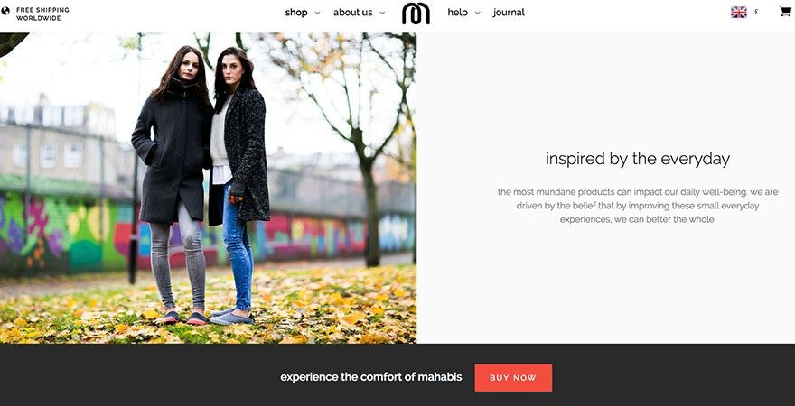 Mahabismonetizes the about us page by adding buy now buttons throughout the page. The button is vibrant and attention grabbing. While the button brings you back to the product page, if you were to implement this, take it a step further. For example, if there’s a picture of your product in the picture, direct your buy now button to the exact product page rather than a collection. Or move the customer directly to the shopping cart with the item already added.