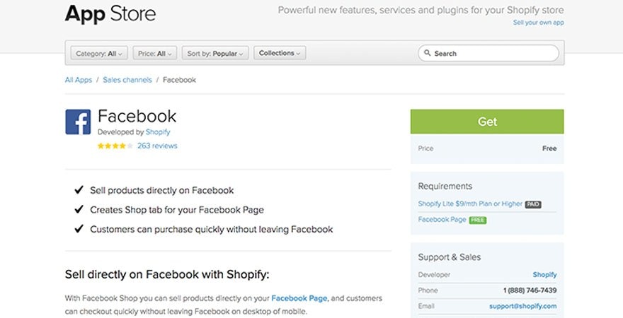 Shopify甚至还开发了其他类似的Facebook营销工具ShopifyFacebook频道应用程序,你可以创建一个Facebook商店标签,在Facebook上出售产品,客户可以在不访问你的网站的情况下购买产品。