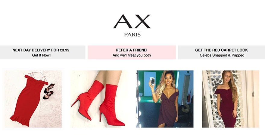 影响者营销的例子:AX巴黎利用有影响力的人来增加销售。使用#axparis标签,你会发现有影响力的人与他们的粉丝群分享他们的联盟链接。值得注意的是,网红还使用#ad标签来澄清他们因发布帖子而获得补偿。在时尚界,网红营销很有效,因为它能让顾客看到一件衣服穿起来是什么样子。因为他们知道网红是什么样子,这有助于建立足够的信任,他们更有可能购买它。如果一个通常很有魅力的网红穿着一套衣服看起来很棒,粉丝们可能会更有可能购买类似的衣服来获得同样的效果。影响者营销作为一种社会证明来帮助推动销售。