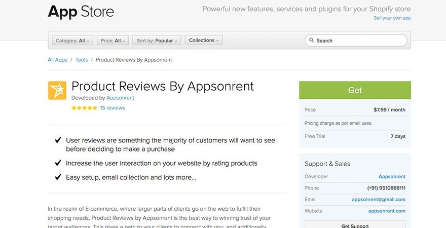 使用能够优化评论的应用程序。获得丰富的代码片段有助于使您的产品链接对浏览器更具吸引力。当客户看到一个丰富的评论片段时,它会显示你对产品的星级评价。你在一个产品上得到的评论越多,你就越有可能得到一个评论丰富的片段。