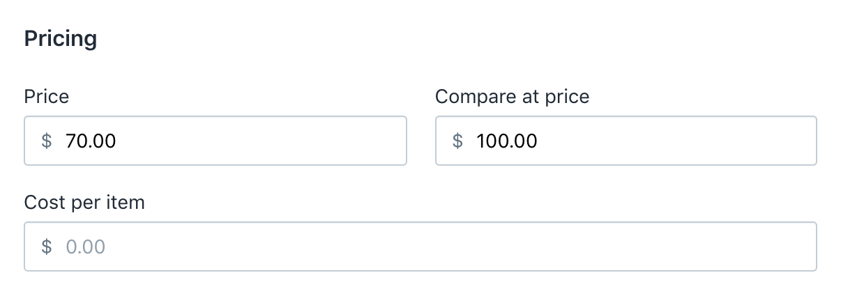 如果您想告诉人们某件商品正在打折,请确保使用第二个字段。在“比较价格”一栏列出产品的原价,在“价格”一栏列出销售价格。