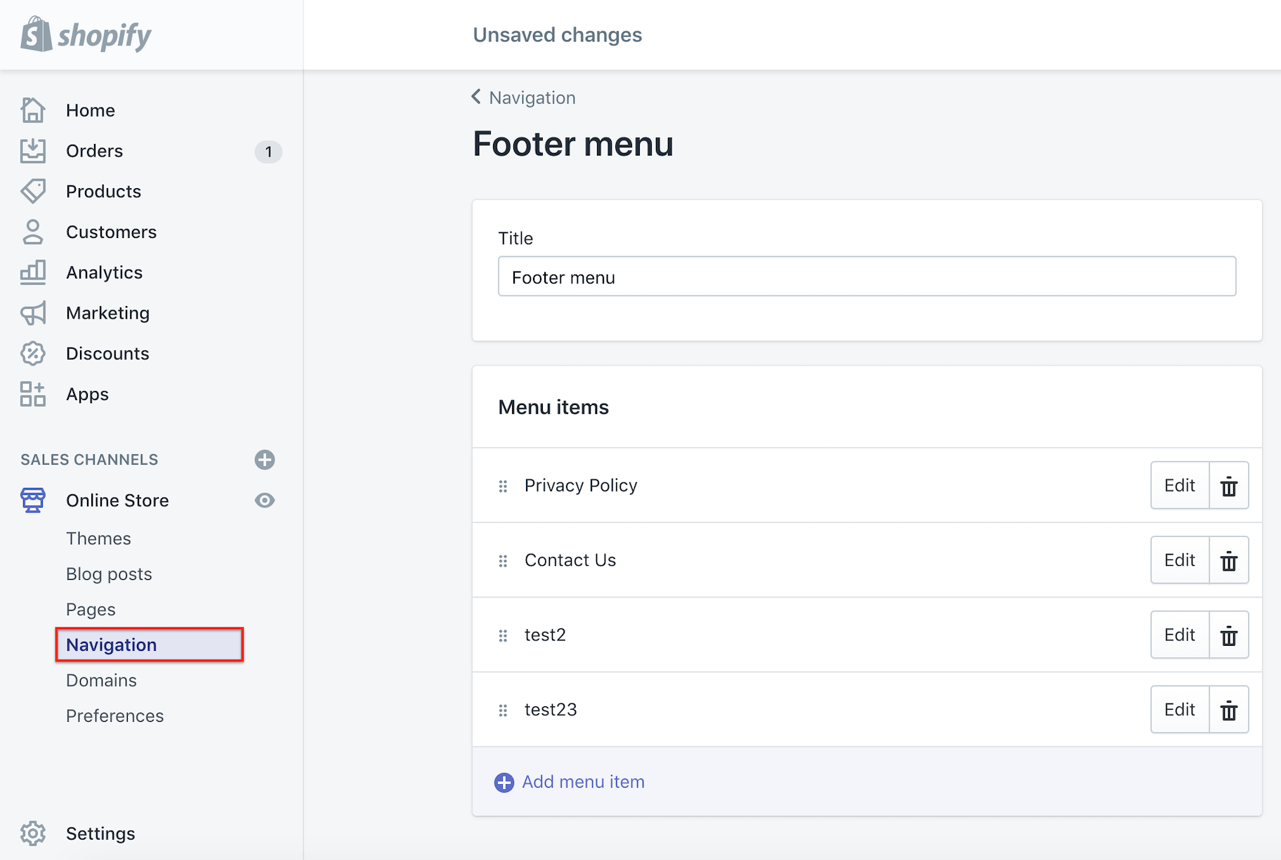 - 进入“销售渠道”➜“网店”➜“导航”。