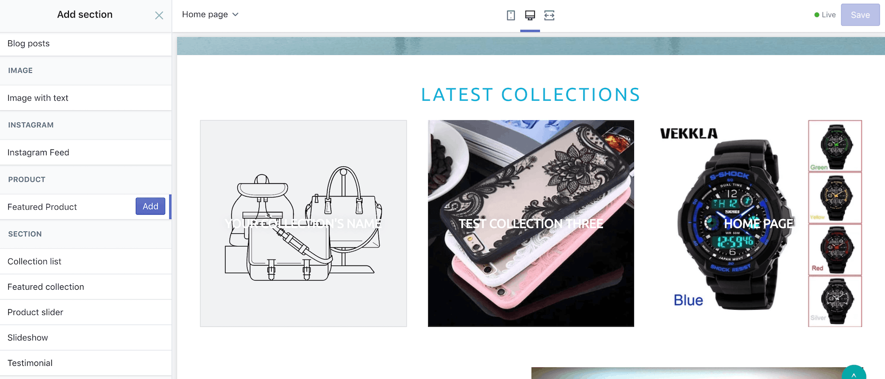 如果您导航到Shopify管理区域>主题>自定义>特色产品,您可以为特色产品选择一个集合。