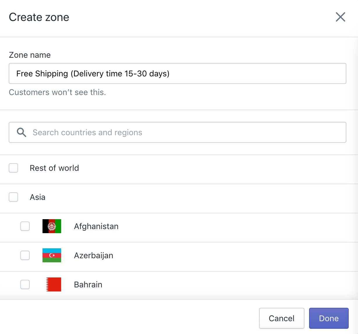 您可以添加您计划发送到的国家。只要加上“世界其他地方”,如果你可以运送到其他地方。