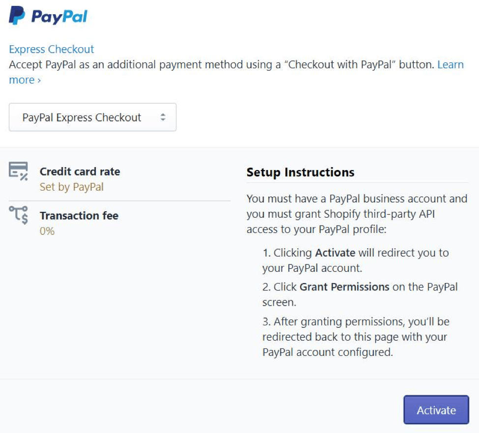 要设置它,点击“支付提供商”页面PayPal部分的“激活”按钮。