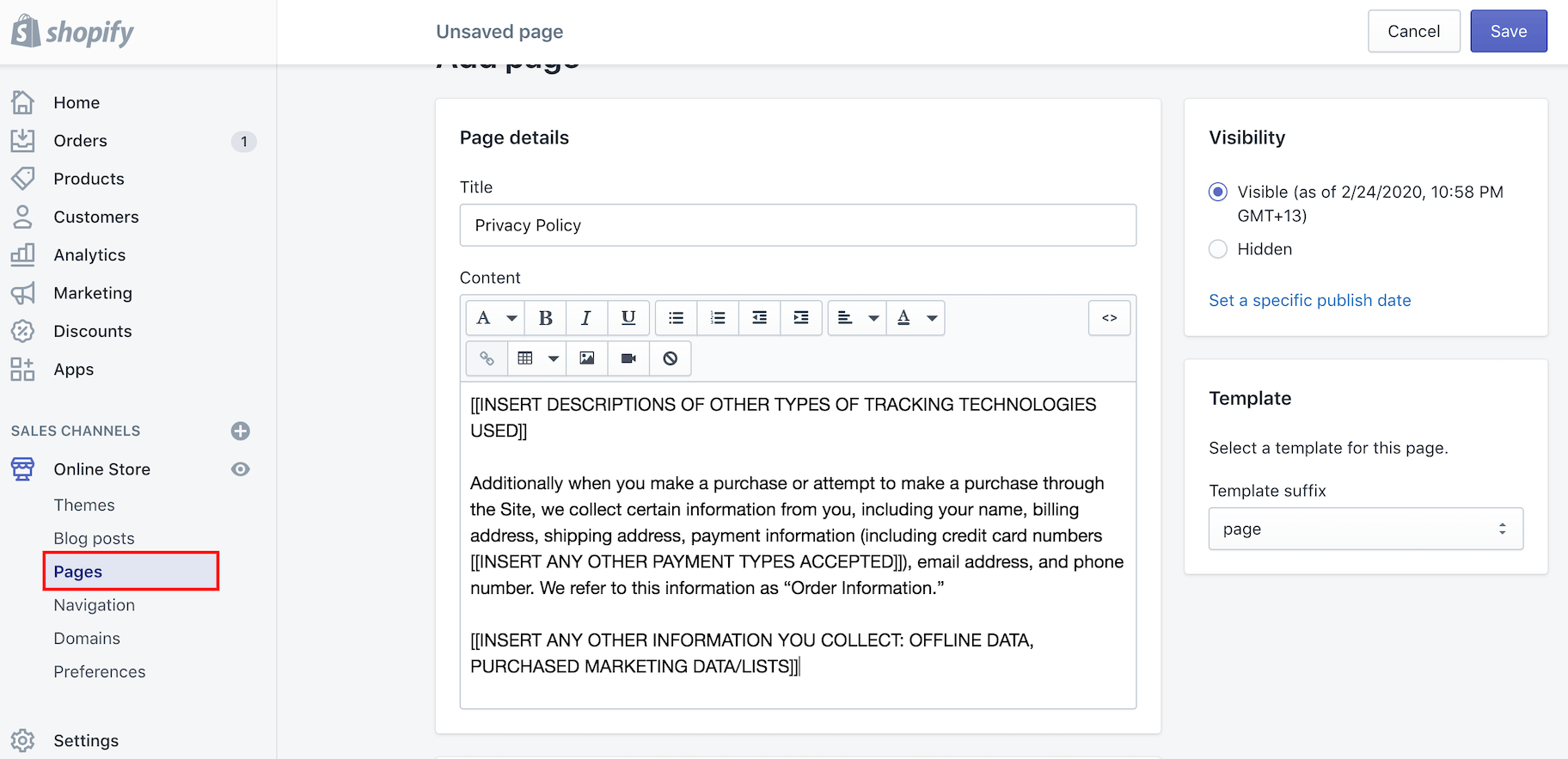 就像你在Shopify上做的任何页面一样,你必须将这些添加到网站的页眉或页脚,否则客户无法在没有直接链接的情况下访问它们。