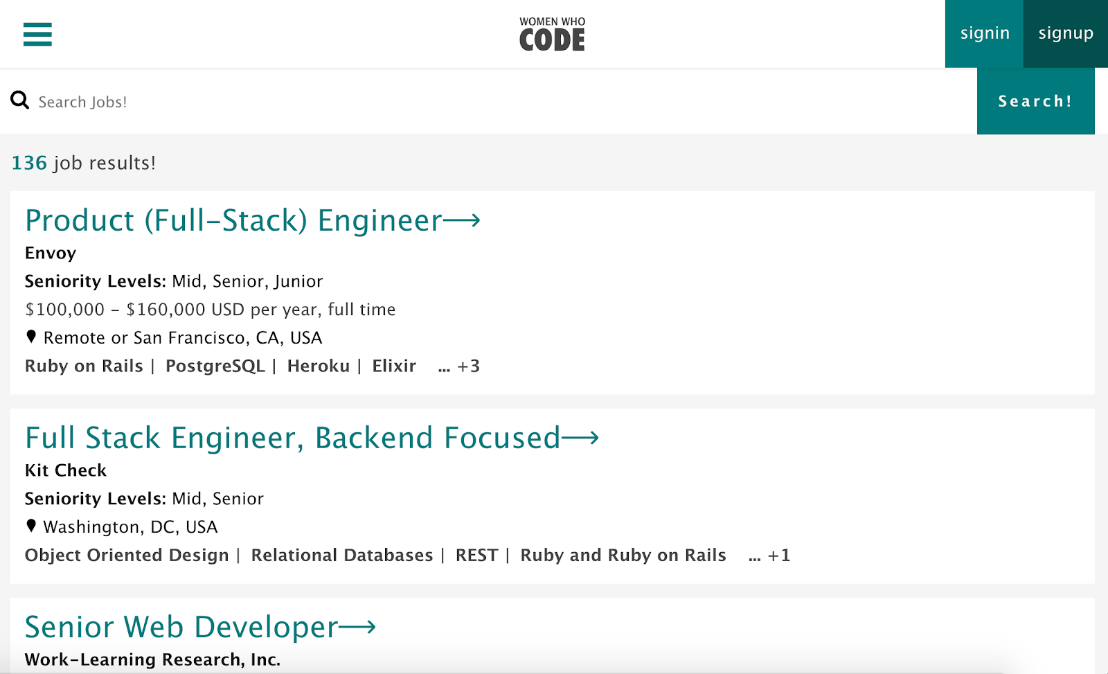 一个全球性的非营利组织,致力于帮助女性在技术事业上取得成功。它也有一个招聘板,其中大多数招聘都与网络开发和/或软件工程有关。