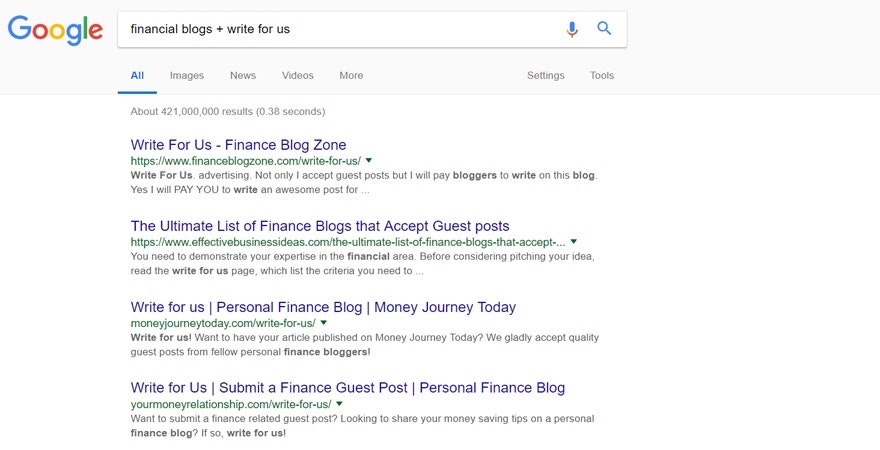 这会给你一个作者署名,帮助你获得关注。假设你想写财经博客文章。在谷歌上搜索这些工作,输入如下内容: