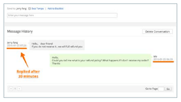 为了保护自己免受这种情况的影响,在进口他们的产品之前,要经常检查AliExpress.com供应商的响应速度。通过AliExpress.com给他们写一封邮件,看看你能多快收到一封合适的回复。您甚至可以创建一个虚构的场景,假设您没有收到订单。注意你的卖家需要多长时间回复,以及他们是如何处理这种情况的。