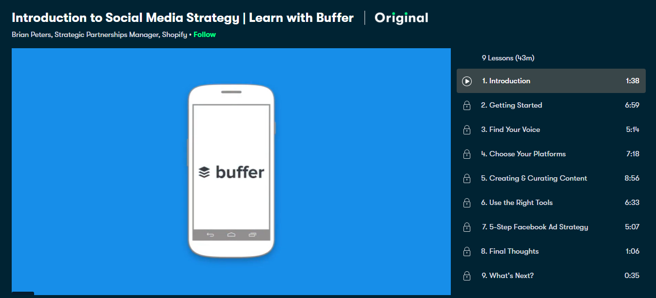 这就是为什么我喜欢我们为企业家提供的免费在线课程列表中的第三门课程。乐鱼真人下载地址这是Buffer的社交媒体策略课程。现在,我喜欢Buffer,我自己也用过它。在掌握社交媒体方面,他们是顶级品牌之一。