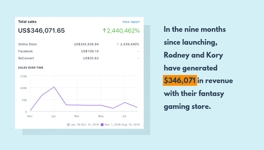 在Instagram上大获成功之后,9月,他们决定迈出下一步。他们开始建造一个Shopify商店围绕幻想游戏利基,用马克杯、别针和与幻想游戏世界相关的服装填充它。然后,他们开始在Instagram上测试不同产品的受欢迎程度。他们的追随者很快做出了回应。