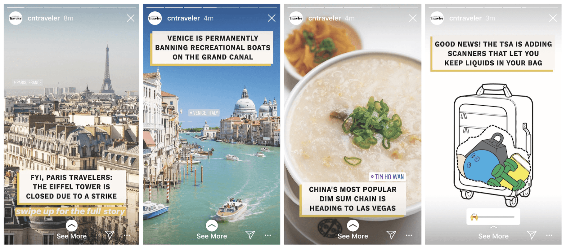 在这个例子中,Condé Nast Traveler分享来自全球各地的旅游新闻。