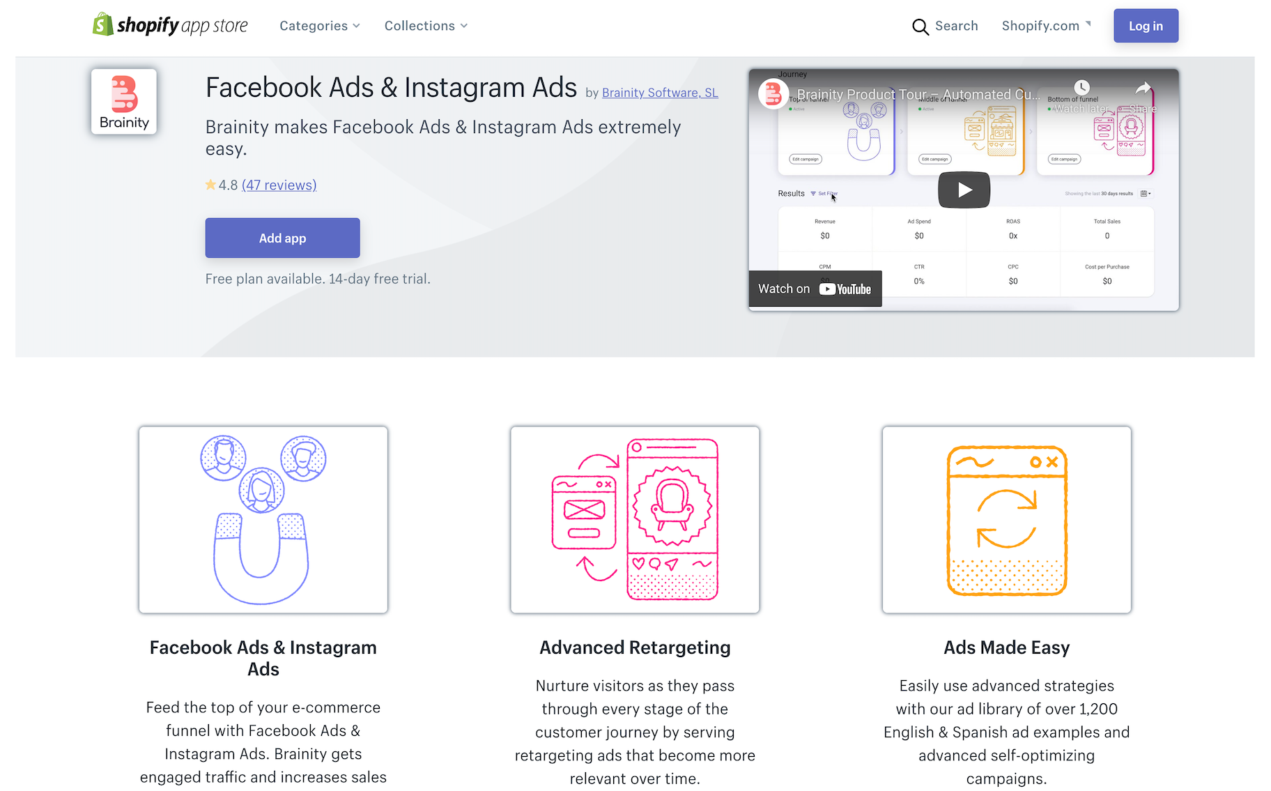 为什么要使用它:Branity将社交媒体广告自动化。从创建活动到自我优化受众定位,它是每个店主都需要的营销助手。您可以使用动态预算分配来优化基于活动ROI的性能。或者进行重新定位活动来促进销售。您还可以轻松访问报告以确定您的销售业绩。
