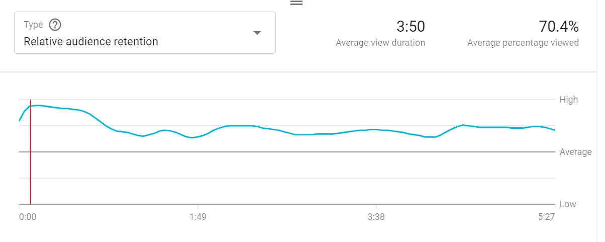 让我们回到上面的例子。虽然70%可能不是理想的,但我们可以看到它高于平均水平,这意味着大多数五分钟的视频都没有达到70%的标准。不算太寒酸。