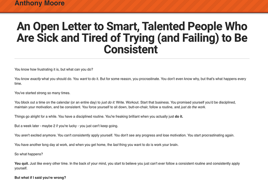 这个五步模型确保了这个销售页面正是你的读者所寻找的,立即被认出是一个真正关心并真正理解问题的人。