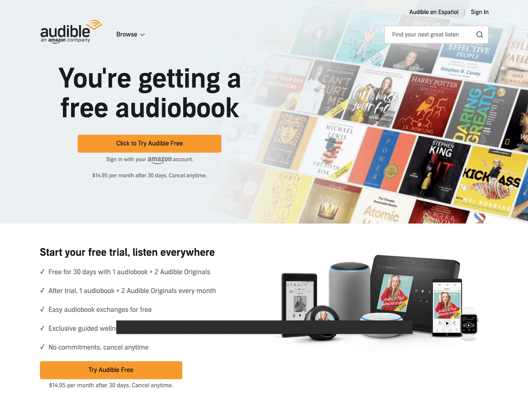 网站总是试图吸引你的注意力,然后让你采取行动。这是一个来自亚马逊的号召行动的例子。乍一看,亚马逊似乎只是想让你注册亚马逊Prime会员。这是真的——这个号召行动确实是为了吸引Prime会员注册而设计的。但是这个CTA有很多事情要做。