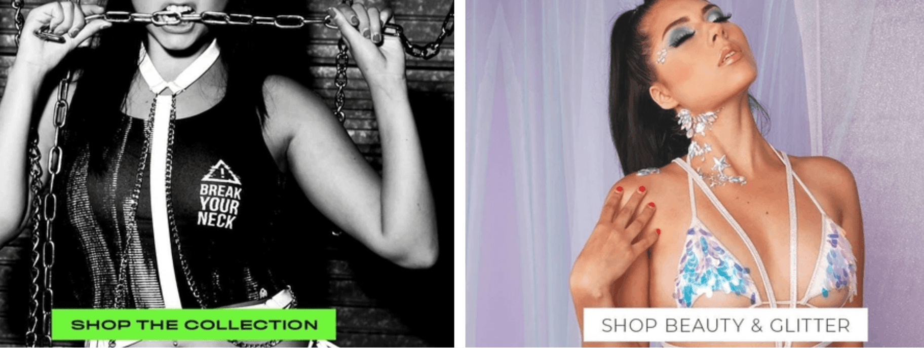 当他们回到他们的网站时,一致性将创造一种熟悉感,并使返回的用户更容易导航。看看iHeartRaves在他们的主页上写着行动呼吁:他们总是说商店然后是产品类别,用于链接到产品列表页面。