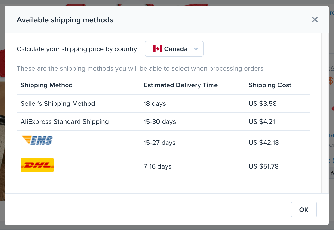 如果你从速卖通发货,你也可以使用他们的发货选项。速卖通标准航运通常是低成本的,有时是免费的,在15到45天内将包裹送到全球各地。