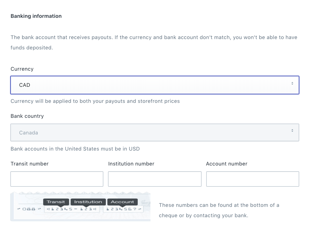 然后,我向下滚动到“银行信息”,这样我就可以把我的货币换成美元。如果你还没有美元账户,你需要去你的银行开一个美元账户,但建立一个账户的过程通常很容易。你甚至可以在网上做,而不是亲自去做。您可以在美元账户的直接存款表上找到您的账户详细信息。