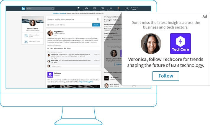 与其他显示在页面顶部或侧边栏的LinkedIn广告不同,赞助内容的优势来自于它在受众新闻提要中的原生位置。