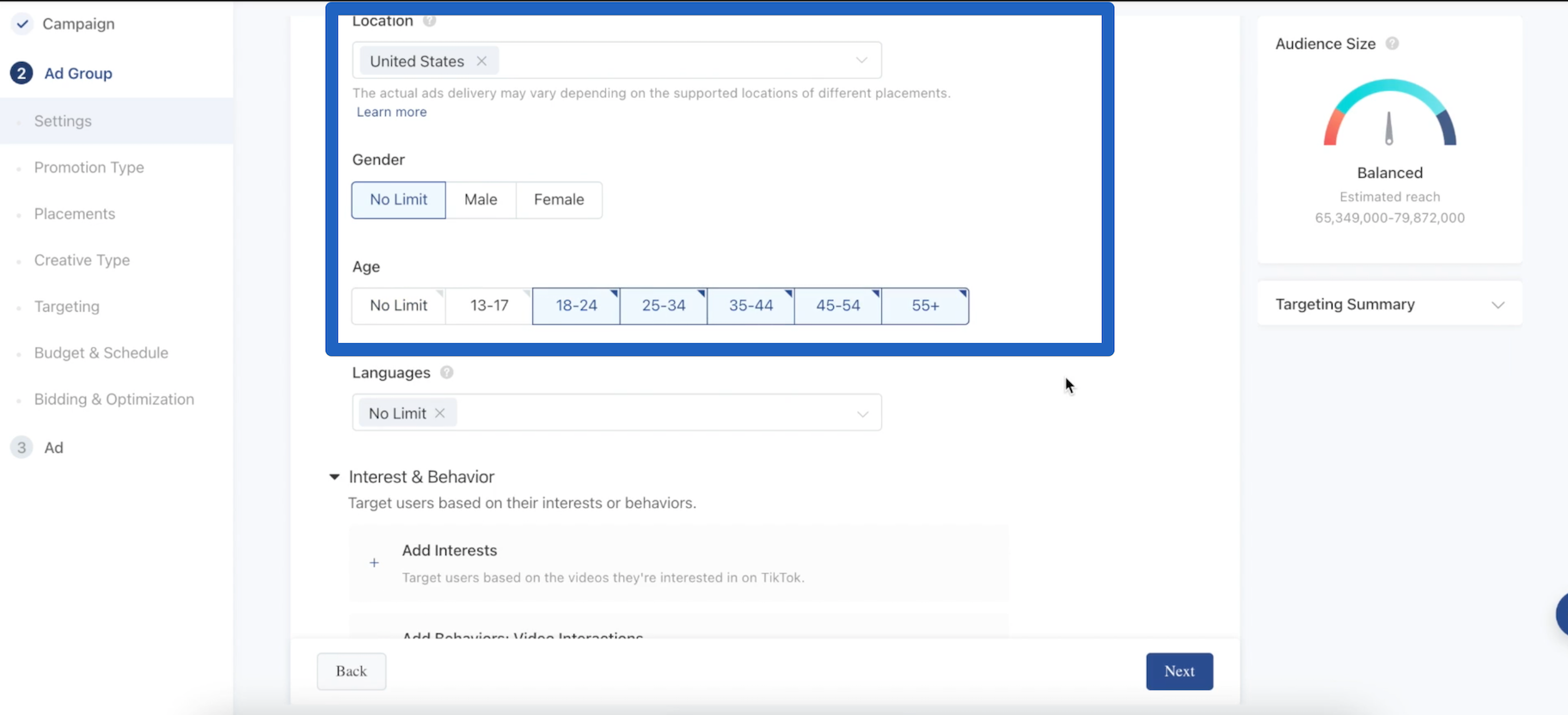 3. Set Your TikTok Ad Placements, Details, and Targeting